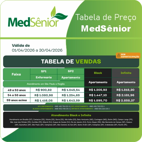 Tabela MedSênior 2026 SP: Preços Atualizados (Abril)